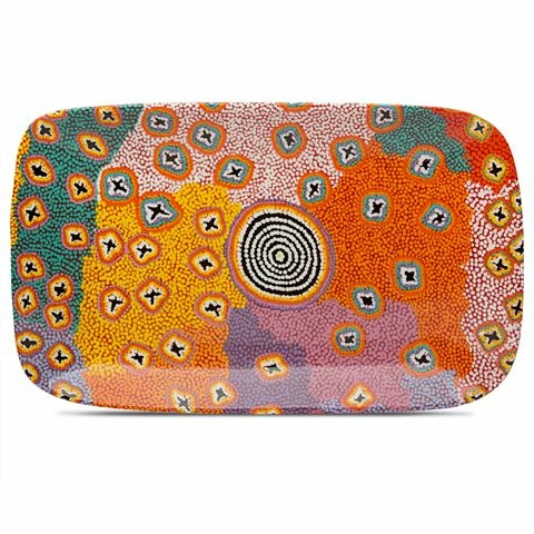 This gorgeous painting with its bright orange, pink and purple colouring is beautifully featured on this Long Plate from Alperstein. A powerful way to bring this beautiful art to life.