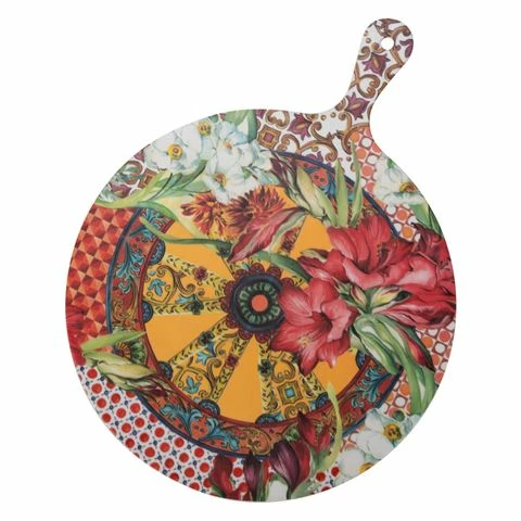 The Baroque & Rock collection of Baci Milano’ Serving/Cutting Boards are almost bursting with Sicilian style with all the signature motifs including lemons, colourful birds, fruits, curlicues and some fascinating faces that might have escaped from the pages of an Italian fable.