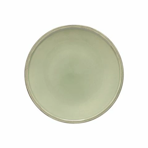 Featuring a subtle grooved edge hand-painted by skilled artisans, it retains a new attitude in stoneware for entertaining or casual everyday use.