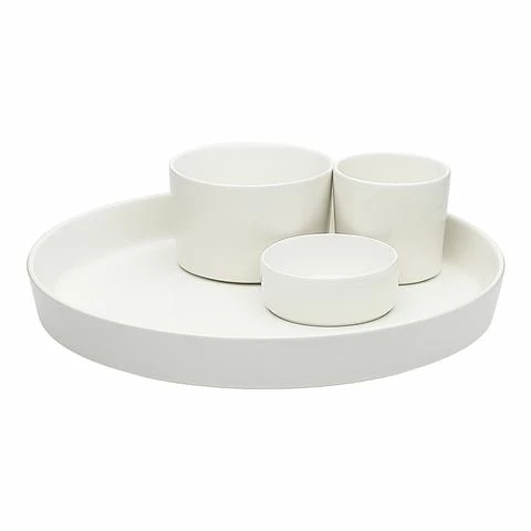 Entertain with Origin-ality with this Serving Set comprising of four pieces including a rounded tray. With room for your favourite canapes, just leave it on a table or effortlessly carry the tray around to serve appetisers to your guests.