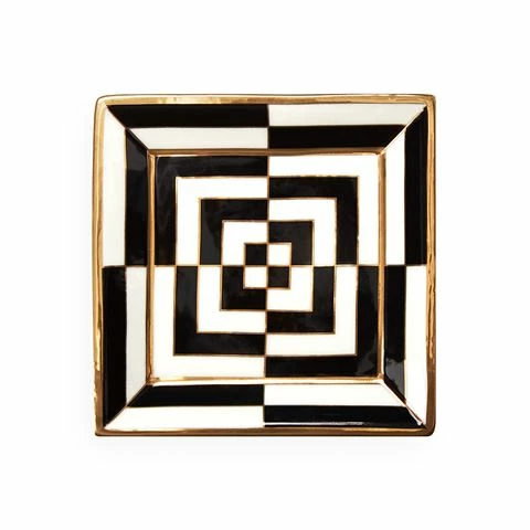 Bring some Sixties’ glam to your table with the Op Art Square Tray, which has a gilded and graphic edge. Crafted from high-fired porcelain with solid gold accents, use it dips, nuts or chocolates.
