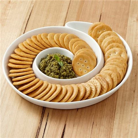When less is more as you’re entertaining, bring out the Classica Spiral Platter, which is a sinuous bowl, which allows you to serve a dip or cheese and fan out the bread and crackers around it. In glossy white porcelain, there’s something quite zen about this presentation, which will suit even the pickiest guest