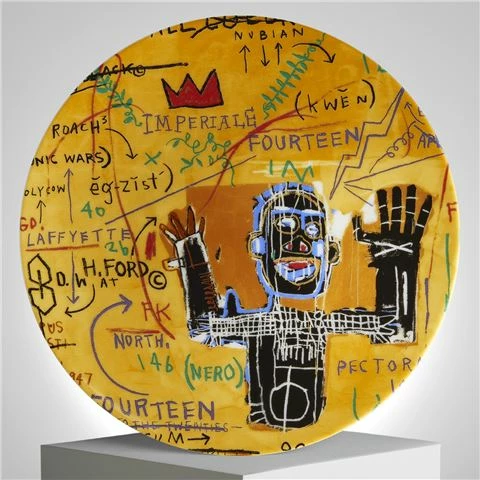 Pay homage in your home to the work of the late artist, Jean-Michel Basquiat with this exuberant plate based on his 1982’ piece, `All Colored Cast 1′ It has been created in accordance with the Estate of Jean-Michel Basquiat and Ligne Blanche in the finest Limoges porcelain and it deserves a special place in the home of a modern art lover.