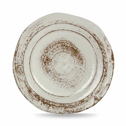 - Grey and brown plate with a glossy brown base