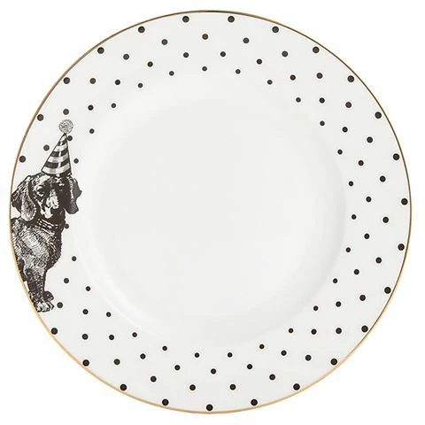 Enjoy an afternoon tea experience like no other with Yvonne Ellen’s Party Pup Side Plate. Featuring an adorable illustration of a dog in a party hat, this fine bone china plate features black dots against a white backdrop and is complete with shimmering gold-toned edging.