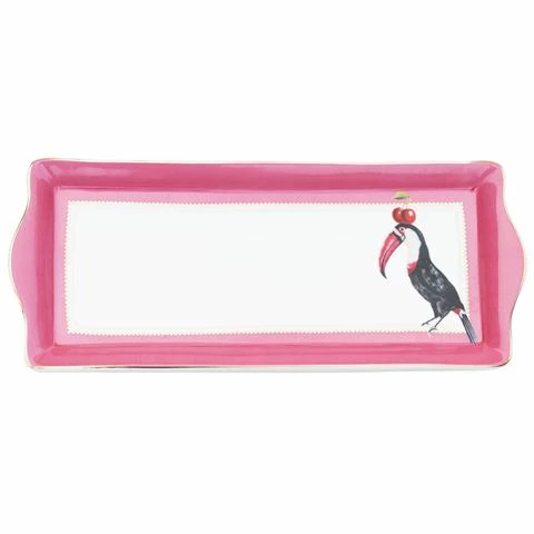 Serve your delicious cake or scrumptious sweet treats in style, with Yvonne Ellen’s Toucan Cake Tray. Made from fine china, this tray features a magenta colour finish with gold detailing, and has a beautiful illustration of a toucan, carrying two cherries on its head.